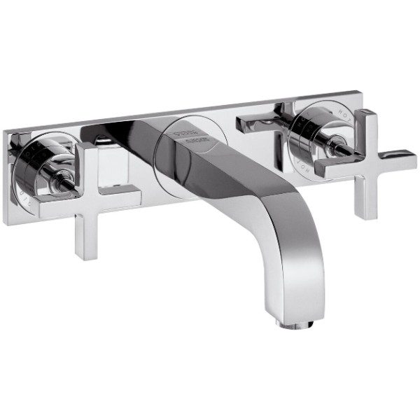 3-hole basin mixer for concealed installation wall-mounted with spout 226 mm, cross handles and plate