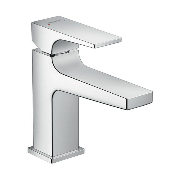 The Metropol 100 single lever basin tap with lever handle and push-open waste set features impressively vast surfaces and a geometric design to blend in with modern bathroom décor. Its large gap between spout and wash basin creates more room for convenient use (ComfortZone 100).