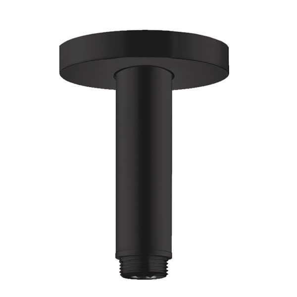 The hansgrohe S 10 cm ceiling connector in matt black can be used to reliably install an overhead shower on the ceiling and connect it to the water outlet. The connector can also be used as a stylish extension. It is made of high-quality brass and is exceptionally durable. The round wall flange is a perfect match for the hansgrohe Rainfinity range, although it can also be paired with other overhead showers with a round or oval design. The lasting quality surface finish in trendy matt black adds a modern touch to the ceiling connector and is perfect for overhead showers in the matching surface finish. Paired with a shower head in matt black, the ceiling connector becomes part of a bold ensemble that looks great in modern bathroom settings.